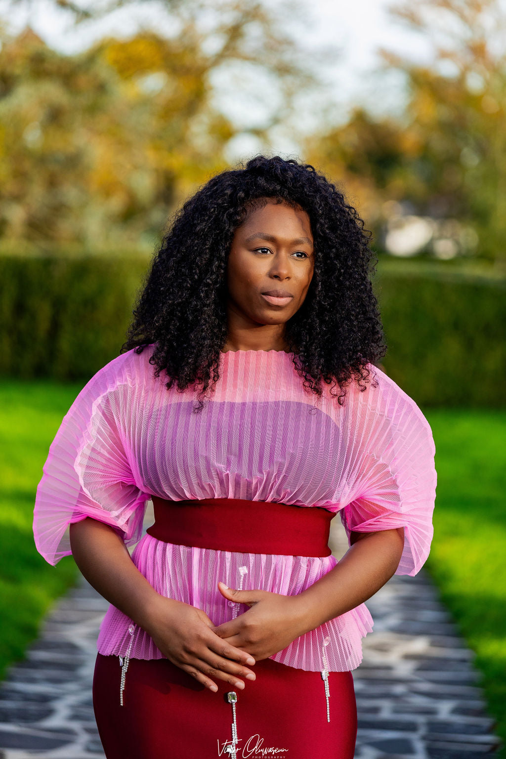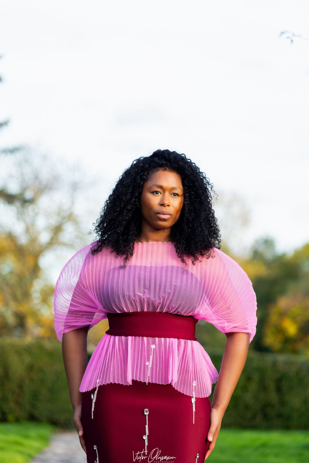 The VIKA TOP is a mildly sculptural piece that gives a boost of confidence when added to an ensemble. Playing on the delicate nature of the knit organza fabric and the textural appeal of pleats. It comes with a 3-inch belt made with neoprene fabric lined to give a clean finish.